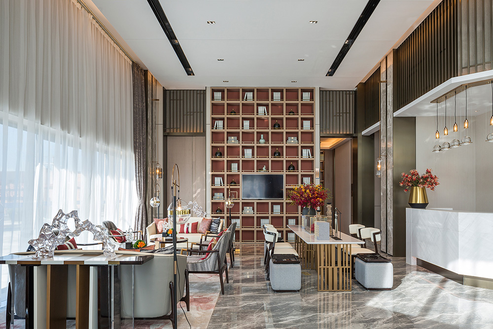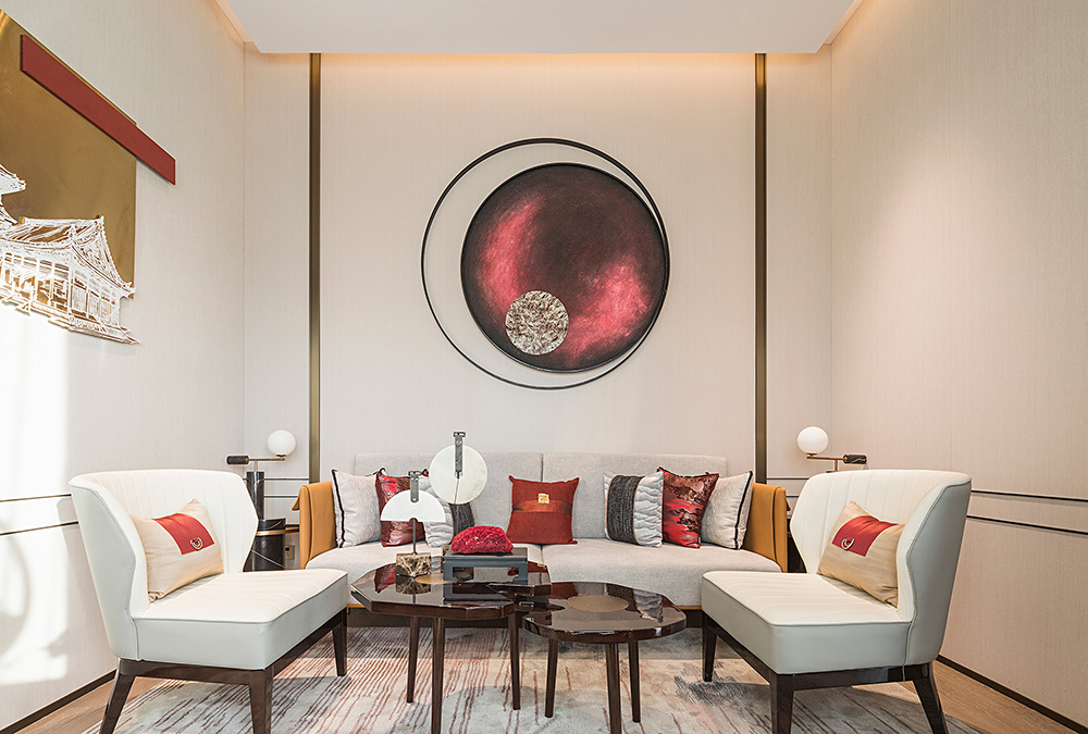 ???? 設計上從清遠的山水中汲取靈感,以開放寬容的視野及現代設計手法刻畫出雅致、靈動的空間,讓東方韻味與現代格調互相交融并構。運用幾何線條和精致華麗的藝術化的處理手法,將金屬時代的線條美、幾何感納入并構成有著現代主義的時代美學。