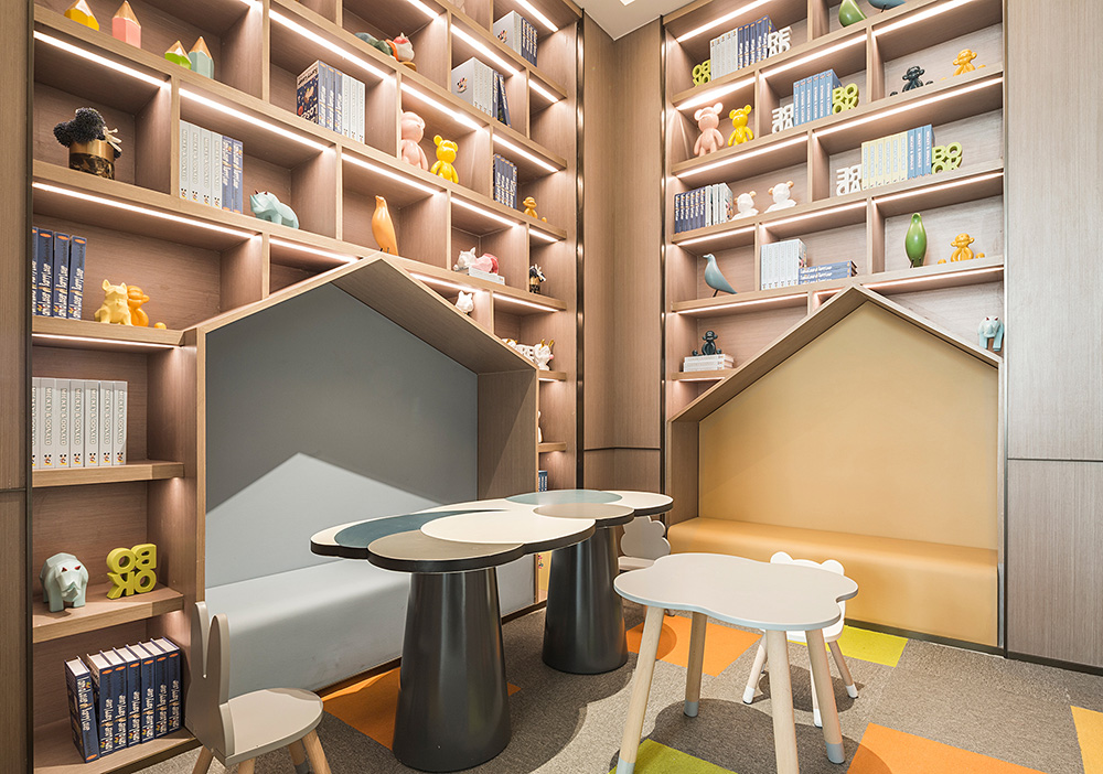 ???? 簡潔又不失裝飾性的造型語言所表現出來的基于線條裝飾性,靈活運用重復、對稱、漸變等設計手法,使幾何造型充滿詩意和富于裝飾性。博古架也是設計師所特別打造的亮點之一,這種不刻意不夸張,自然流露的設計于無聲中印入心靈,留給人與自然、美學更多的對話。