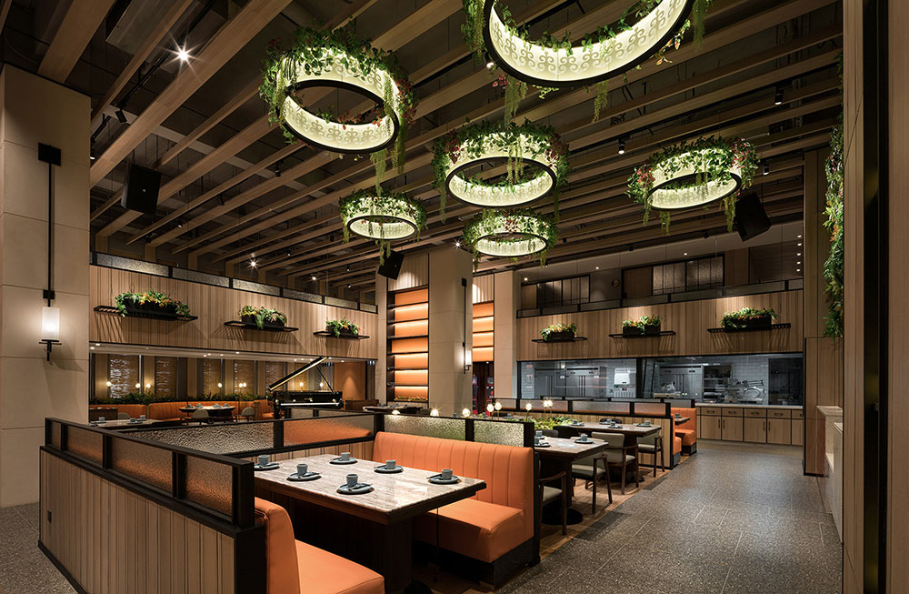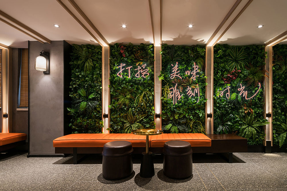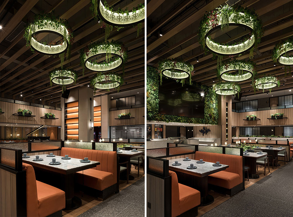 知悅鮮作為一個(gè)多感官沉浸式火鍋連鎖品牌,我們將品牌文化與服務(wù)理念轉(zhuǎn)化為空間語(yǔ)言在形象店面中重點(diǎn)打造,整個(gè)空間以印象中內(nèi)蒙古草原的綠色和生命力為主題, 通過(guò)墻面和頂面的創(chuàng)意綠植造型將四季的生機(jī)定格在飲食空間里中,應(yīng)景知悅鮮有機(jī)、綠色、健康、美味的品牌關(guān)鍵詞,自然、愉悅、輕松的空間基調(diào)配以美甲、洗發(fā)、音樂(lè)、童趣等休閑服務(wù)功能,寓意知悅鮮服務(wù)的熱情以及多感官愉悅的用餐體驗(yàn),詮釋打撈美味、雕刻時(shí)光的品牌宗旨和一個(gè)新品牌對(duì)美好未來(lái)的憧憬。
