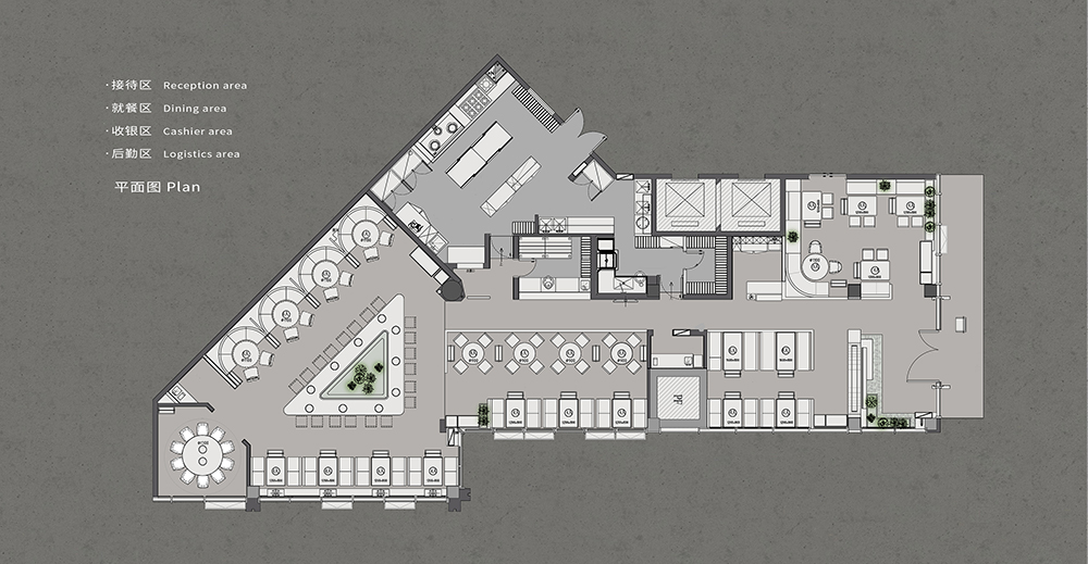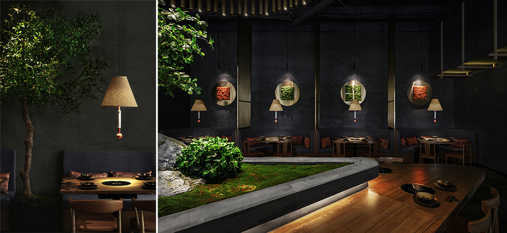 初始亦為回歸的禪意落筆在公共空間動線的終點,我們用完滿和圓融的形狀喻意生活的來時與歸處,場景上方宛若星系的圓形燈飾,是大自然“天時、地氣、順風”之意所向,美食與設計都是生活的藝術,來源于生活的點滴升華為精神世界的向往,以此為感悟,在空間中傳遞寧靜致遠的心靈意境。