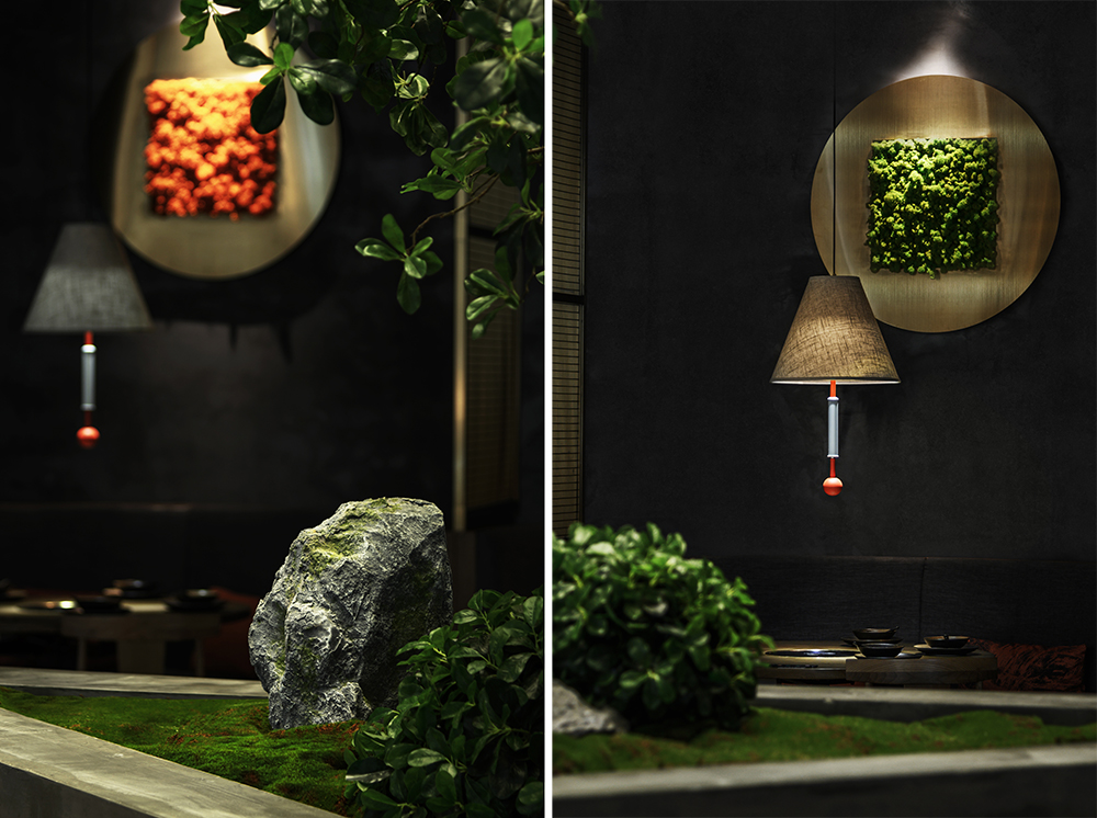 光與綠色,自然中動靜皆宜的美學能量,是萬物伊始的美好也是生命中不可或缺的向往,若空間里只有一處生機勃勃,我們愿意把它留給光與綠色,在墻壁燈光設計中植入綠色靈感,嘗試挖掘靜態美學的內在意趣,于空寂而質樸的空間中舍去滿園芬芳,只留一枝獨秀,在靜與空、樸拙與精致之間形成一種自然、不矯揉造作的樸素感。