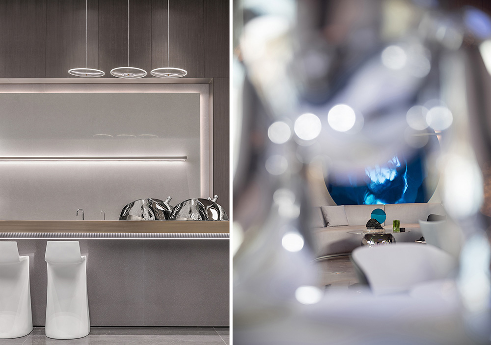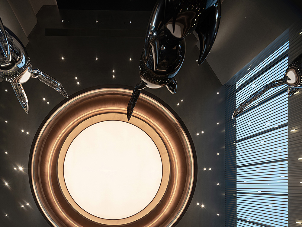 配合宇宙星辰的概念,在裝飾上我們主張將整個空間的美學語言柔化于光線,讓光在弱化物質形態的空間里自由穿梭,就像是星體間竊竊而語的摩斯密碼,形成某種藝術概念和人文意義。
