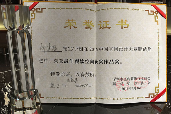 2016-04-22 20:38:38 朗昇設(shè)計作品榮獲“鵬鼎獎”最佳餐飲空間大獎
