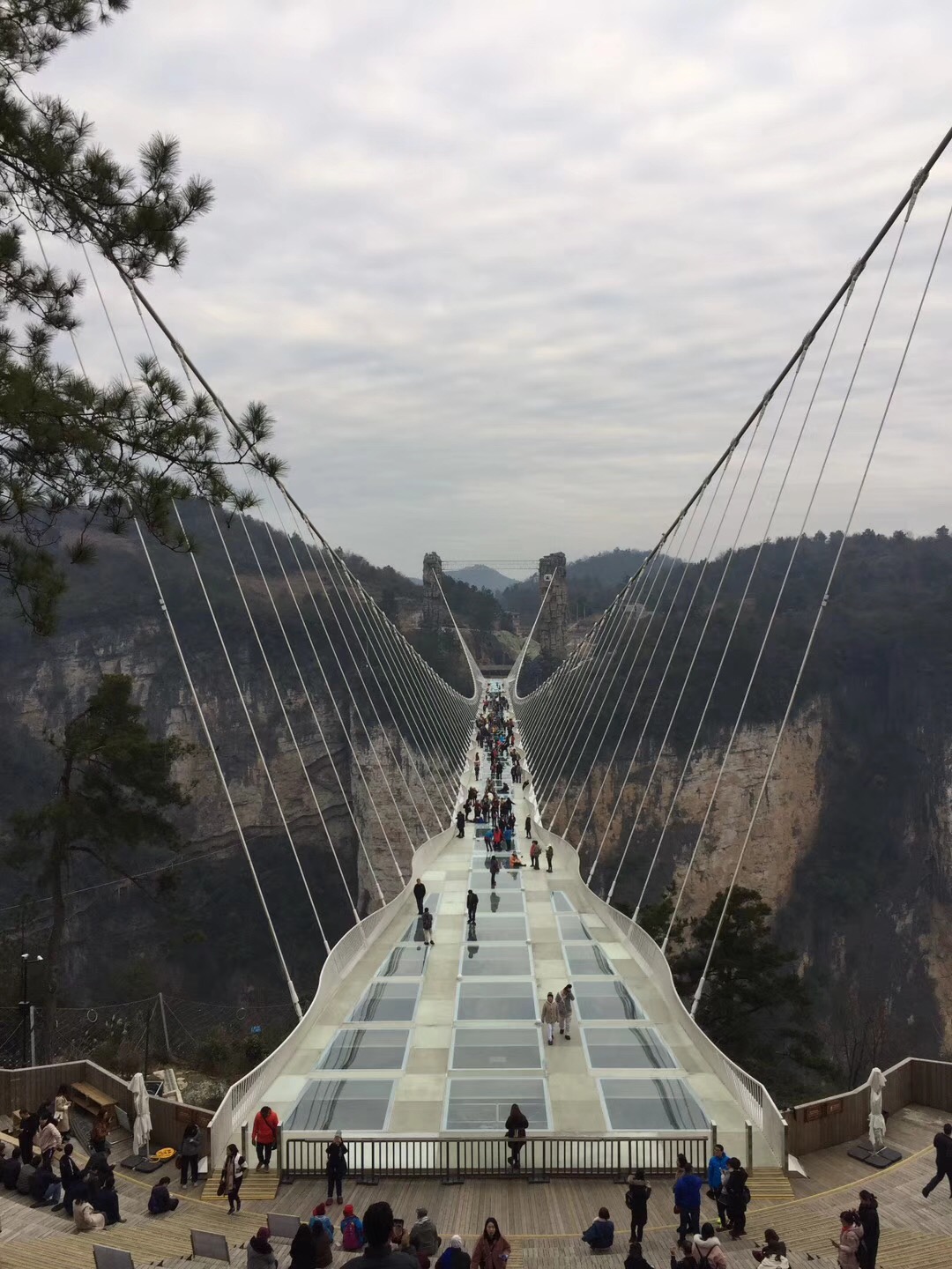 張家界大小峽谷玻璃橋這座全透明玻璃橋長度、高度位居世界第一。