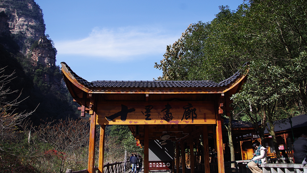 十里畫廊長約五公里,兩邊林木蔥蘢,野花飄香;奇峰異石,千姿百態,像一幅幅巨大的山水畫卷,并排懸掛在千仞絕壁之上,使秀美絕倫的自然奇觀觀溶進仙師畫工的水墨丹青之中。