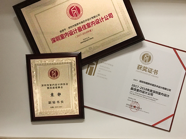 ??????? 出席此次設計頒獎典禮的嘉賓陣容強大,星光璀璨,值得一提的是,朗昇設計憑借2017-2018年在設計行業的影響力,杰出專業的表現,與知名室內設計機構共同榮獲“最佳室內設計公司”稱號;設計總監袁靜憑其豐富的室內設計經驗,榮任深圳市室內設計師協會第四屆理事會“副秘書長”榮譽。