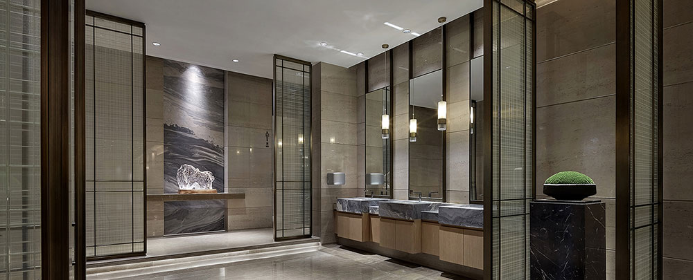 主要用材:石材、青古銅拉絲不銹鋼、木飾面、藝術玻璃等