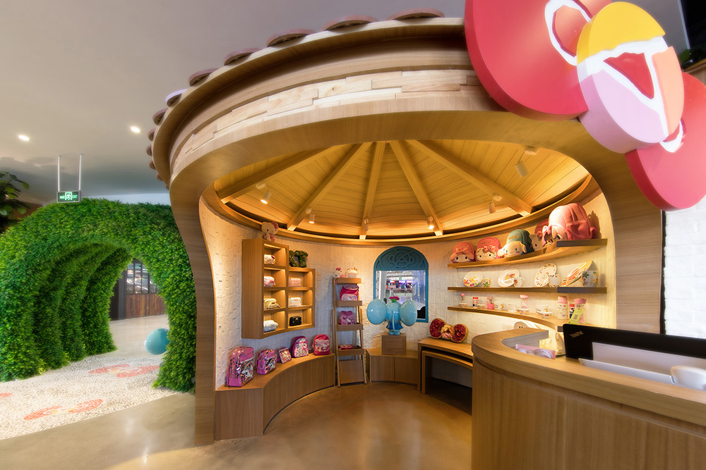 入口處Hello Kitty與朋友在花園嬉戲,拱門和鮮花的映襯下更加勾起人們探索的欲望,直接向顧客傳遞歡迎顧客到來的信息。