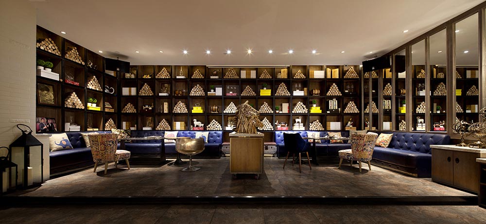 卡座設計與包房設計不分大小,均各有特色,因其具有一定的私密性,因此更適合親朋好友在此相聚。圓木製成的裝飾鏡,木片堆砌的馬頭造型,藍調味道的沙發窗簾,影影綽綽發光的鐵藝燈飾及舊式箱具等飾物,似乎每一個角落、每一件家私與飾物都經過精心設計或陳設搭配,使其整體上歐陸風情及懷舊韻味要比大廳區域顯得更濃重一些,整個空間內散發著更加閑適、溫馨的浪漫之感。