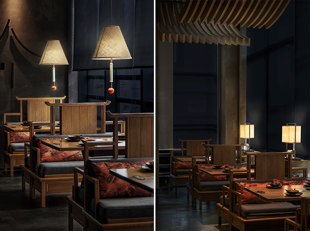 適應不同人群的用餐需求,在座位的設計上添加了許多人性化的細節,靠邊的卡座擁有足夠的私密空間,為忙碌一天的食客準備了安靜的角落;一人火鍋區是設計師一次特殊的嘗試,離開面對面的既定設置,既填補了一個人用餐的孤獨,