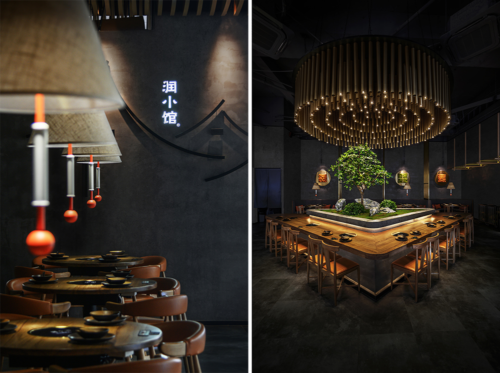 菩提只向心覓,何勞向外求玄,設計者的心中都有關于侘寂之美的理解,在這里我們把它解讀為物與物、物與人之間的寧靜、淡然與和解,希望通過情與景的交流讓每一位來到潤小館的人間食客都能褪去繁華、回歸純真、感受暖意。