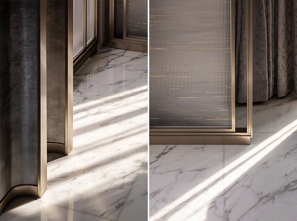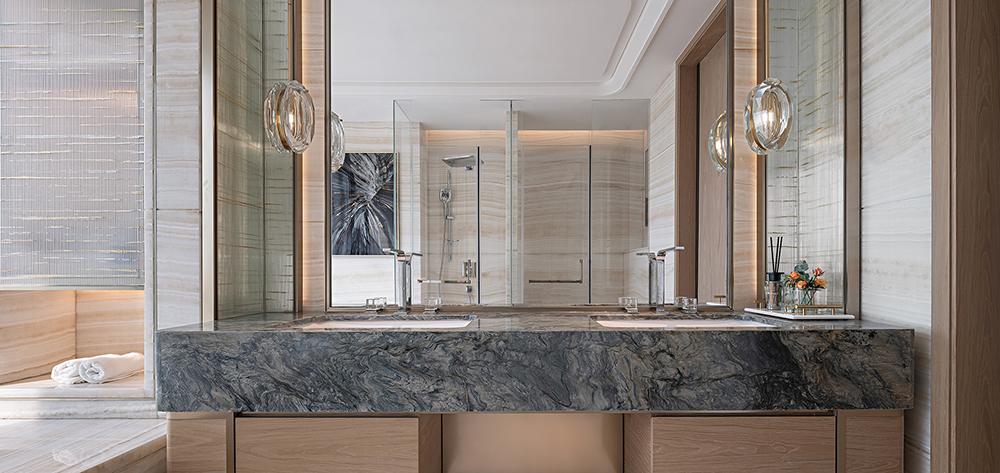石材的運用,盡可能保證天然紋理的質(zhì)感,讓自然氣息結(jié)合現(xiàn)代審美及生活舒適性的需求。