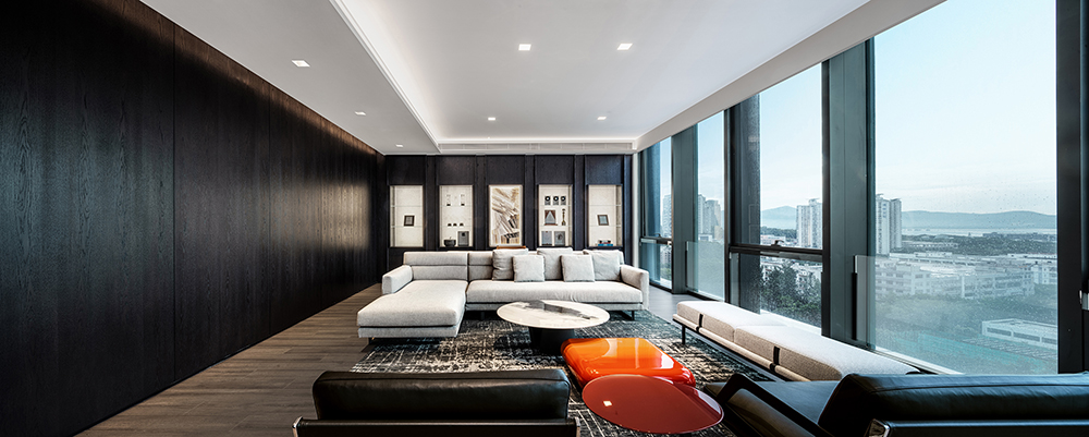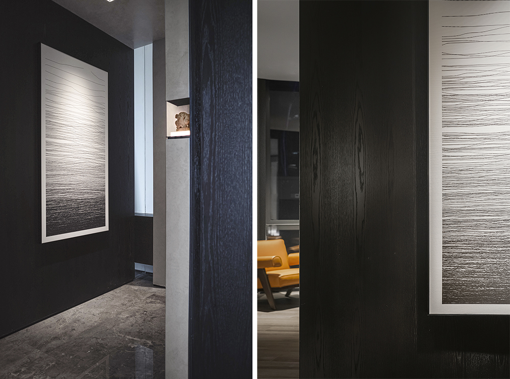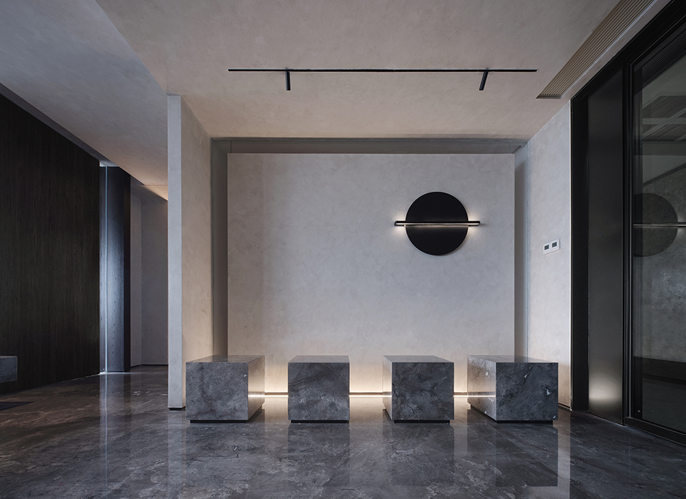 黑白灰,是在腦海里最先閃出的空間構圖,以此為水墨慢慢展開心中的畫卷。時間攝影師杉本博司的作品、黑白畫面里的電影江湖徐徐落筆。每當夜晚來臨,坐在辦公室或者公共區域的某個角落,外面的喧囂仿佛與自己無關,心中的世界波瀾暗涌,一種置身江湖而又冷靜旁觀的奇妙感覺總能為設計師帶來創作的靈感。